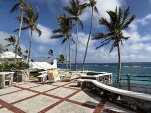 The place was called St. George’s Inn. The cottage was nice the view was great, but the internet was an issue. While we are away we are still working so I desperately need a good internet connection. After settling in, we had to get ready to go to dinner. We took a taxi which cost us $50 each way to the Barracuda Grill. I ordered the goat cheese, and roasted beets appetizer and the suckling pig roast for my entree and John had foie gras and rockfish for dinner. The food was delicious!