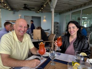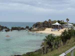 Today we decided to walk into town to grab some breakfast. We found this place called GoJo’s Coffee House, and we ate a Tomato, Avocado & Bacon sandwich which was amazing. Afterward, we hired a tour guide for the whole day to take us around to see the island. We were lucky we got the most delightful tour guide. Her name was Gloria she took us around the entire Island. It was great because she knows everybody on the island, so we got 5-star treatment everywhere we went. We started out with a tour of crystal caves. They were utterly breathtaking. One of the great things about visiting in the offseason is that all our pictures and places we visited were mainly empty. The next stop on today’s tour was Gibbs Hill Lighthouse which has 185 steps which we climbed and were able to go outside and take panoramic pictures of Bermuda. Afterward, Gloria took us to Elbow Beach Hotel, and we had a delicious lunch at Mickey’s Beach Bistro. I ordered the Penne Bolognese which was out of this world and John ordered the Tuna wrap which was good as well.