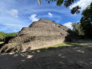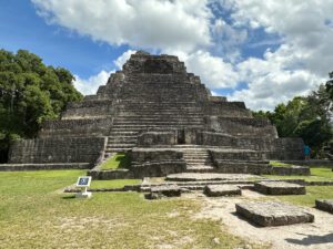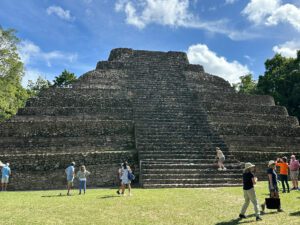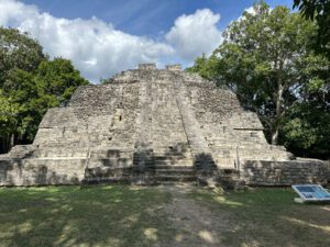 Today we had a full day of tours of the Mayan Ruins. The first one we drove to was 2 ½ hours away and it was called Dzibanche with its pyramids and landscaped grounds, and the multi-leveled Mayan city of Kohunlich, surrounded by magnificent Cahoon palms. This town was once known for its beautiful pottery and splendid temples hidden within the jungle.