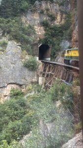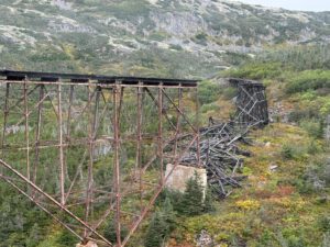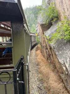 Ascend the beautiful mountains on the White Pass Summit Train. From your antique narrow-gauge car view incredible scenery, as your tour guide shares stories and the history of the Klondike Gold Rush. At the foot of the pass, nestled next to a waterfall, rests Liarsville Gold Rush Trail Camp and Salmon Bake. Here a cast of sourdoughs and dance hall girls will entertain you with a hilarious melodrama and a poem.