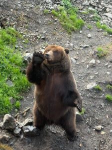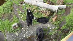 Observe brown and black bears in the Fortress of the Bear rescue center.