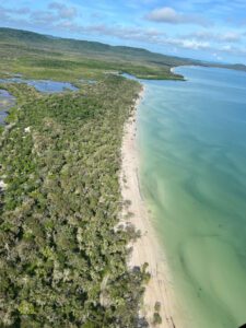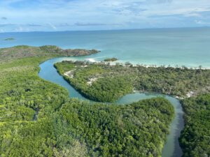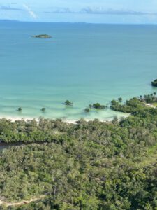 Soar high above the island-dotted sea in a helicopter and fly east toward Cape York, the wild and remote tip of continental Australia. The flight will take you high above neighboring Horn Island, where you may notice the horn-shaped hill that gave the island its name. To the east lies Punsand Bay, islets such as Murangi and Cape York, the northernmost point of the Australian continent. Famed British captain James Cook named the cape in 1770 for the Duke of York, the brother of King George III. As you will see from your window seat, the cape has remained a rugged, largely undeveloped area rimmed with beautiful beaches. As the helicopter flies along the coast, you may see coral reefs below the water’s surface, fishing boats just offshore, and the occasional adventurer, as many areas can only be reached in a 4-wheel-drive vehicle. That is the beauty of the Cape York peninsula; it is wild, remote, and extraordinarily pristine.